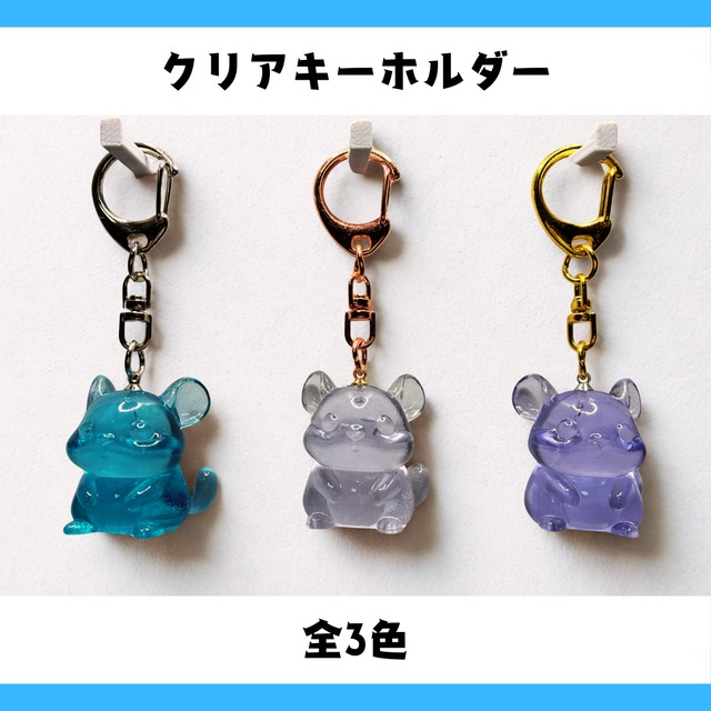 チンチラ型クリアキーホルダー(全3色) 透明感あふれるレジンで成形した、チンチラ型のクリアキーホルダーです。 つぶらな瞳とぽってりとしたフォルムが特徴で、角度や光の加減によって表情や色合いがやさしく変化します。 コンパクトなサイズ感で、かばんや鍵に付けて持ち歩くのにぴったり。 お好みに合わせて、金具のカラーをお選びいただけます。 ちょっとしたギフトや、自分だけのチンチラグッズとしてもおすすめです。 【カラーバリエーション】 ・クリアブルー ・クリア ・クリアパープル 【金具カラー】 ・シルバー ・ゴールド ・ローズゴールド ※ご注文時にご希望の金具色をお選びください。 【サイズ】 本体:約高さ30mm(耳含む) 【素材】 UVレジン(光造形3Dプリント)、金属パーツ 【ご注意】 ・高温・直射日光を避けて保管してください ・落下や衝撃により破損する場合があります ・1点ずつ手作業で制作しているため、色味や気泡の入り方に個体差があります