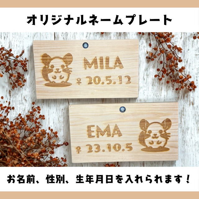ネームプレート・ネームタグを同時にご購入の場合はこちらを購入してください。 別々に買うよりお得にご購入いただけます! 【ご注文方法】 ご購入時の備考欄に、以下の内容をご記入ください。 ① お名前(アルファベット大文字のみ) ② 性別(♀/♂) ③ 生年月日 ※文字の打ち間違いがないよう、必ずご確認ください。 【注意事項】 ・3Dデータをもとにレーザー加工を行っているため、木目や焼き色には個体差があります。 ・お名前の文字数が多い場合、文字サイズを調整する場合があります。 ・こちらは受注生産品のため、返品・交換はお受けできません。 ・発送までに数日〜1週間ほどお時間をいただく場合がございます。