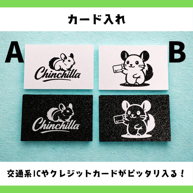 かわいいチンチラのイラスト入り! 交通系ICやクレジットカードがぴったり入る、超薄型のカードホルダーです。 お好みに合わせて2種類のデザインからお選びいただけます。 カラーはホワイトとブラックの2パターンをご用意。きらっと光るパール調の仕上がりが特徴です。 カードは横からスライドして出し入れするタイプなので、スマートに使えます。 【仕様】 ・サイズ:約 90mm × 60mm × 厚み2mm ・対応カードサイズ:一般的なICカード(免許証、PASMO、クレジットカード、マイナンバーカード など) ・素材:PLA+ 【注意事項】 ・無理に押し込むとカードに傷がつく場合がございます。 ・無理に曲げたりすると破損の恐れがあります。